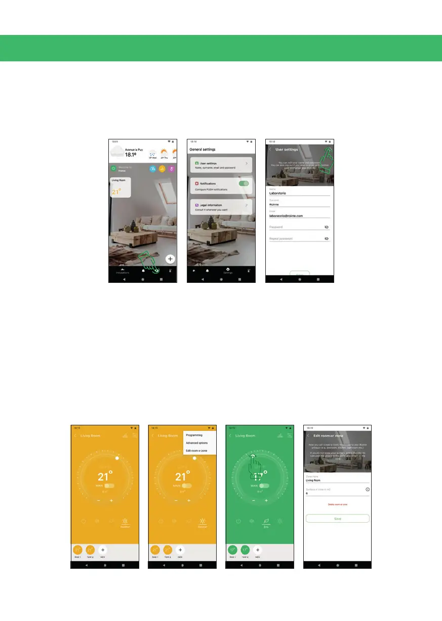 temperature); turn the zone on or o; or view zone statistics. The temperature icons
