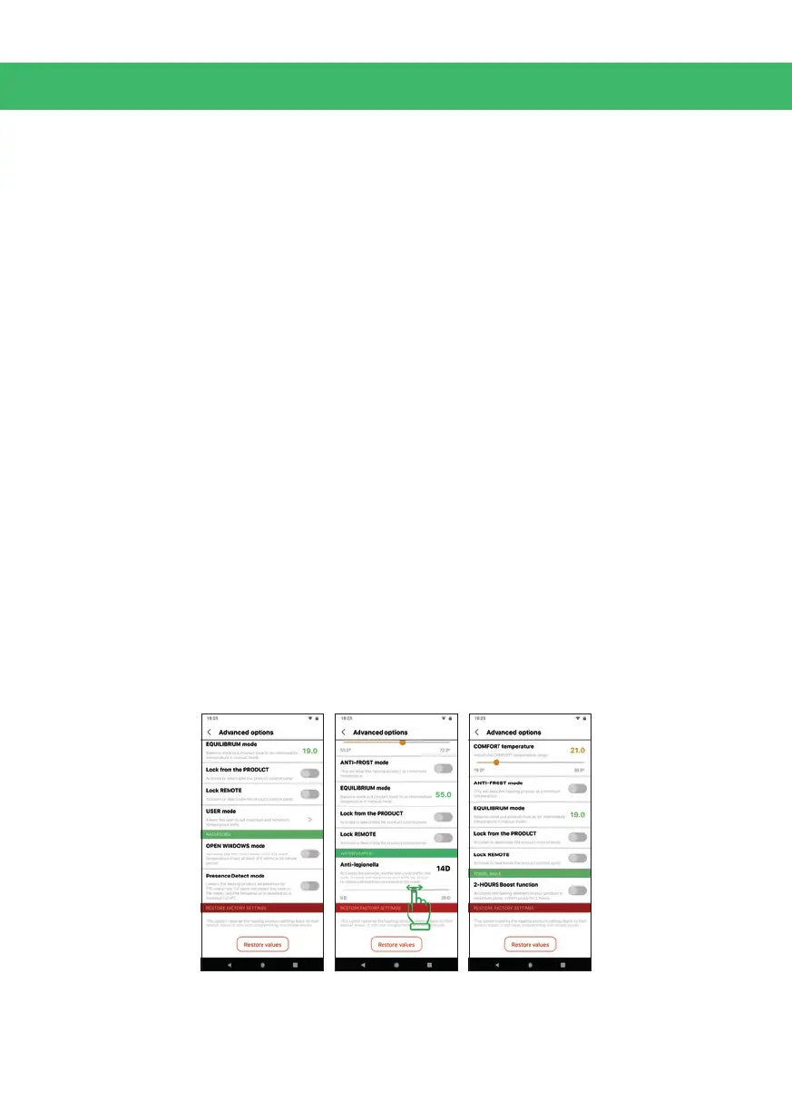 • Activate / deactivate the Anti-frost mode (which maintains the radiators and