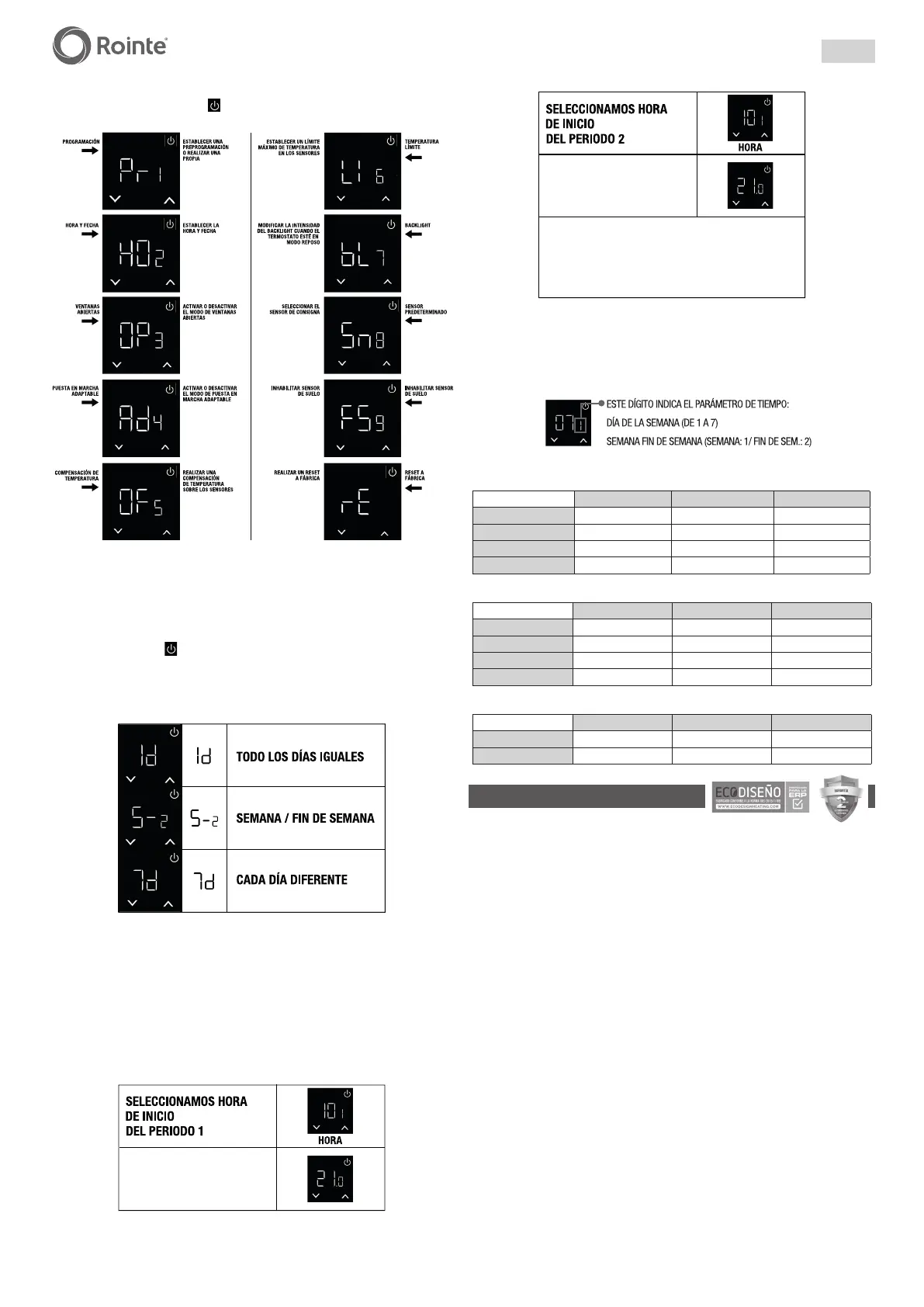 (5ºC) u OFF como modo activo para los periodos sin programación (periodos en los que