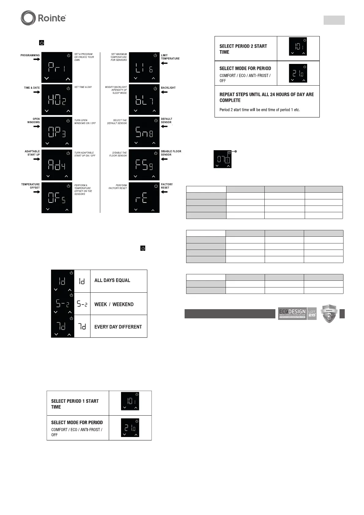 When you have programmed day 1, go to the schedule for day 2. If you have chosen