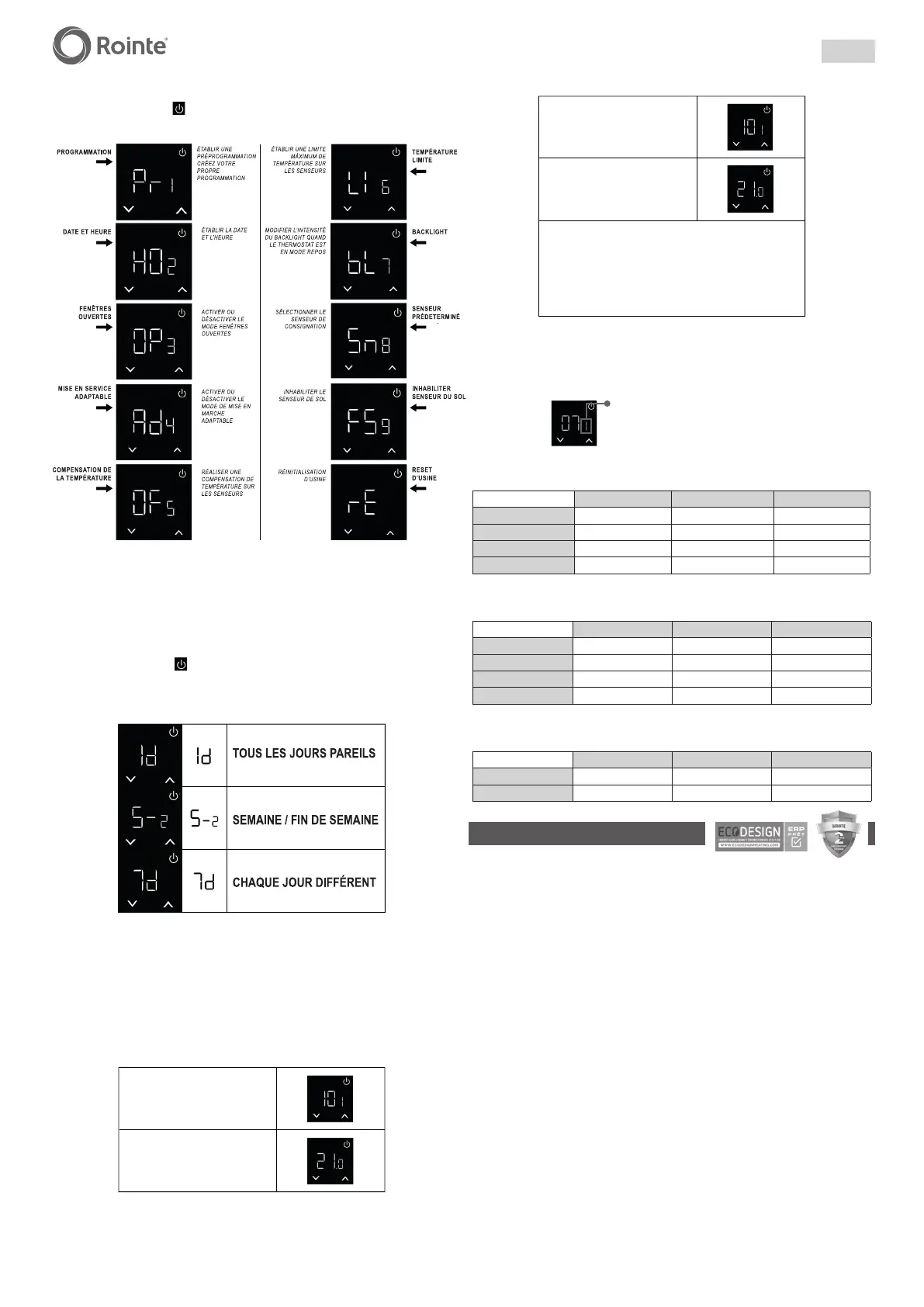 lesquelles le produit ne se trouve pas en mode ECO ni CONFORT).