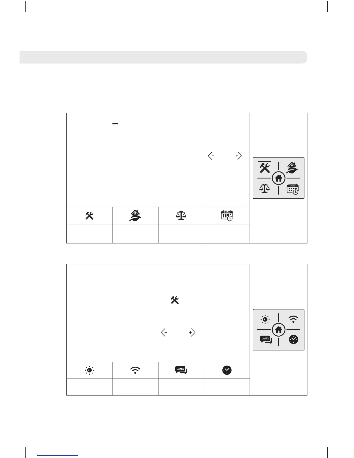 icons allow you to access different sub-menus