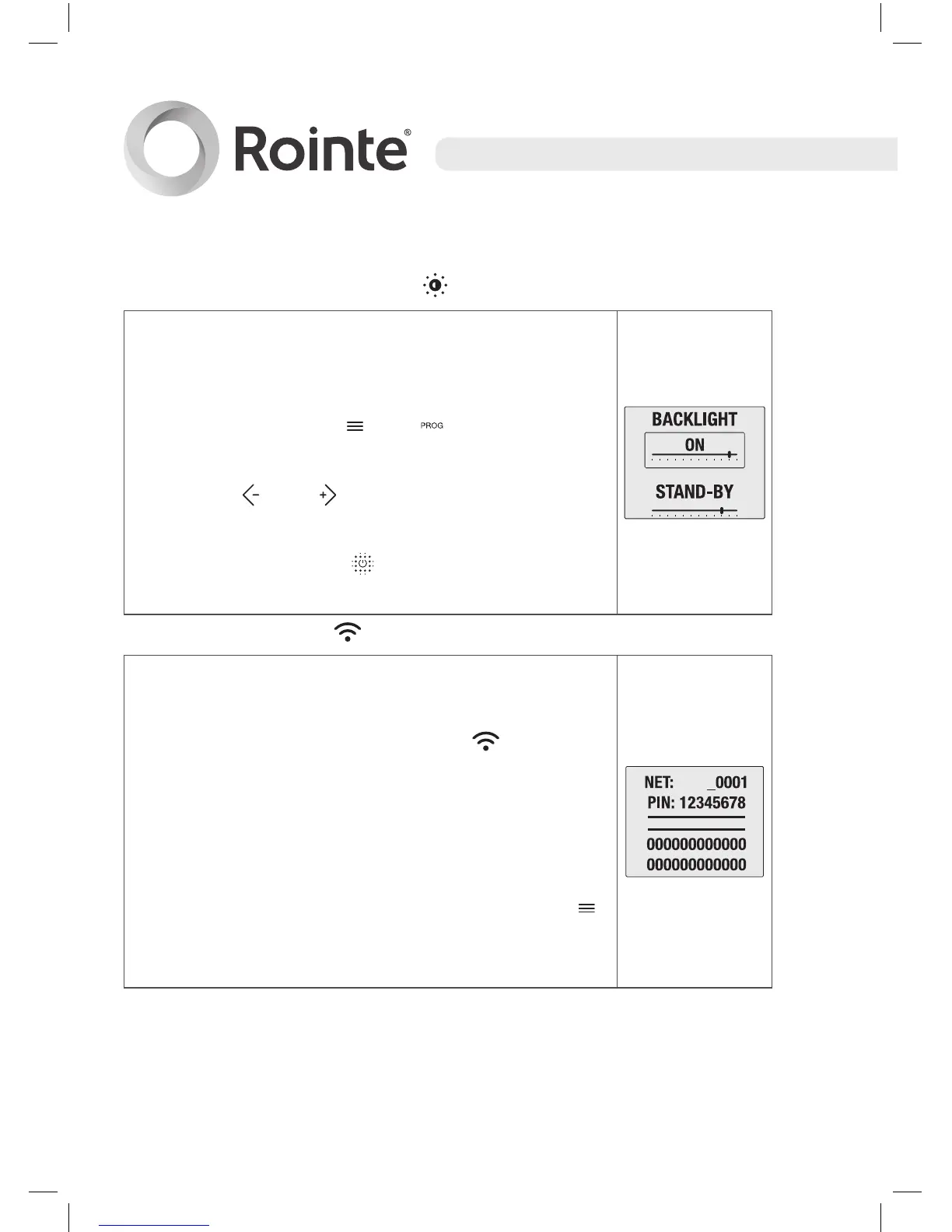of the screen in the STAND-BY and BACKLIGHT
