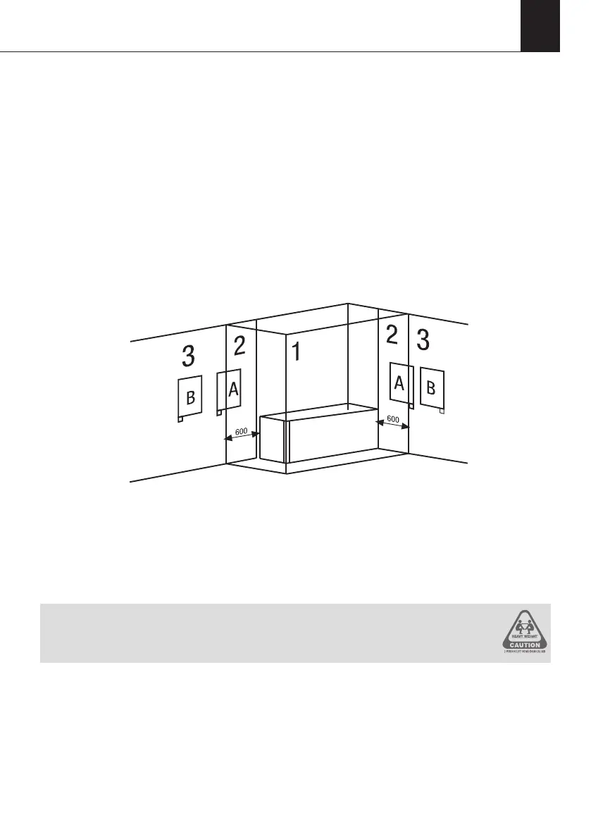 distance of 600 mm from any wet areas. The body of the product can be placed in Zone 2