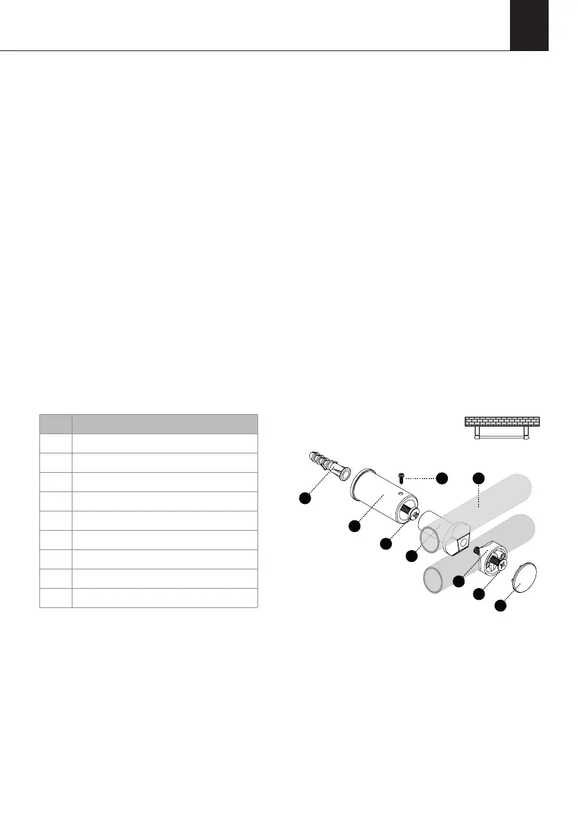 7. Insérer l’embellisseur du point 6 dans la pièce d’ancrage (B) et tenir avec la vis de