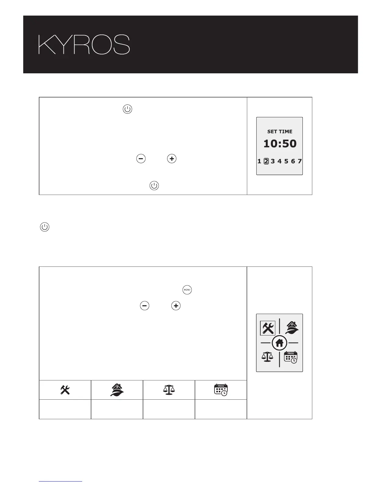The main menu of your Kyros radiator is