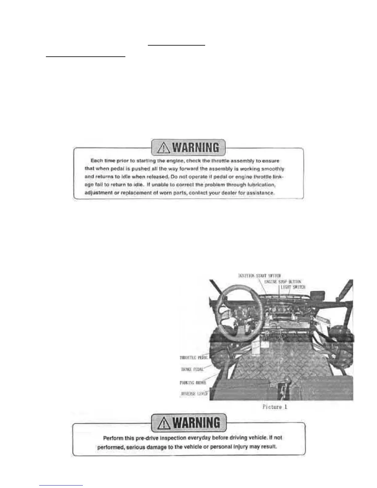 location and use of each control necessary to operate this vehicle. The operator must know how