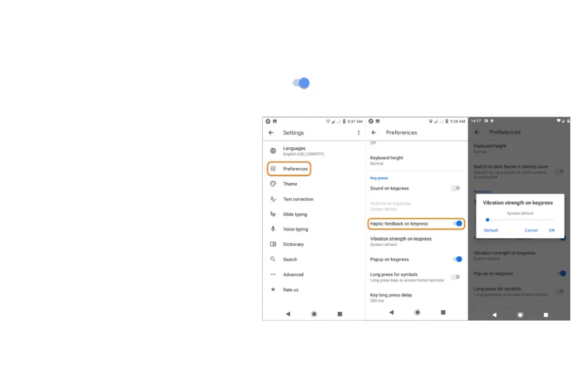 • Go to Settings > System > Language & input > Virtual keyboard.