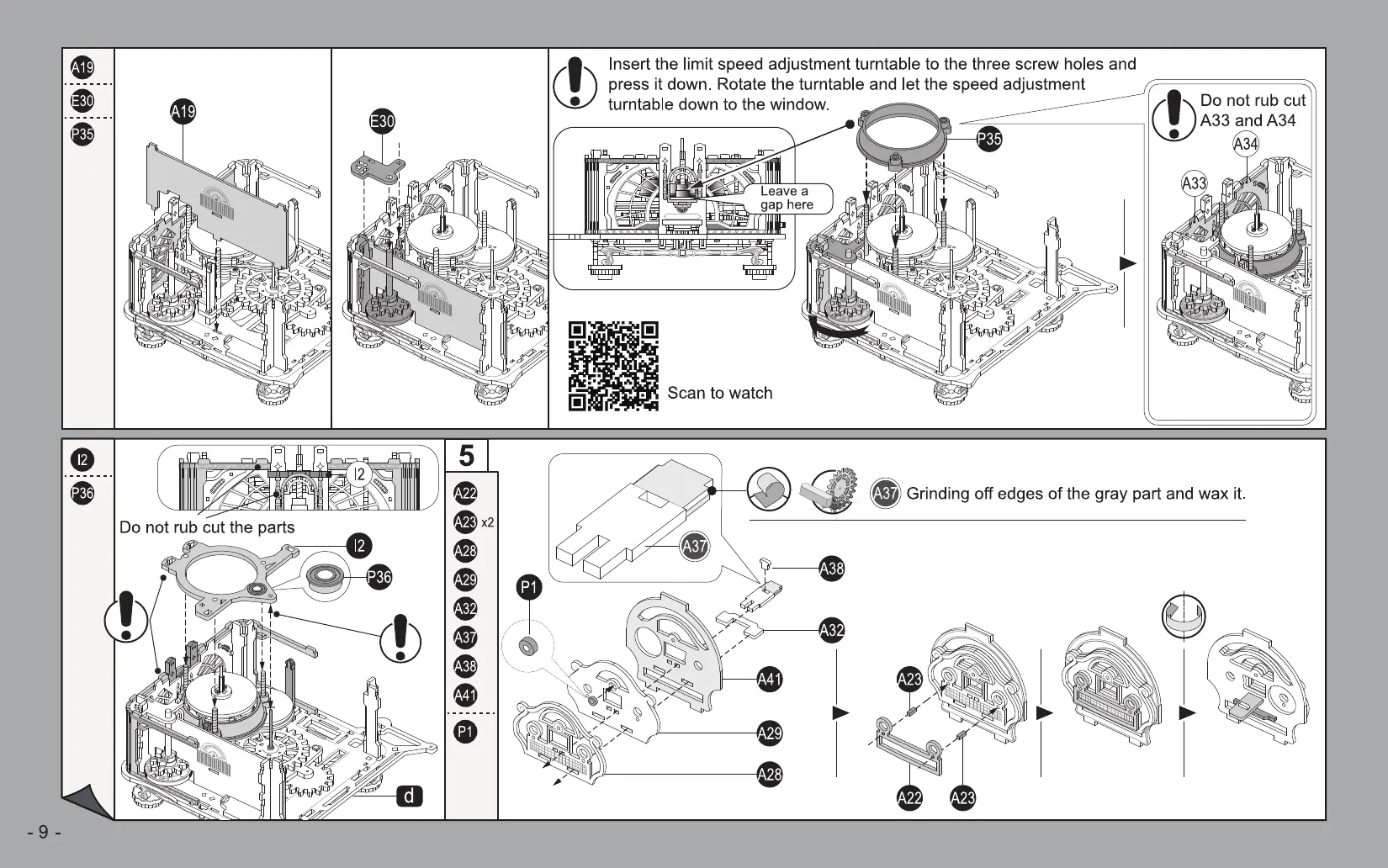 Do not rub cut the parts