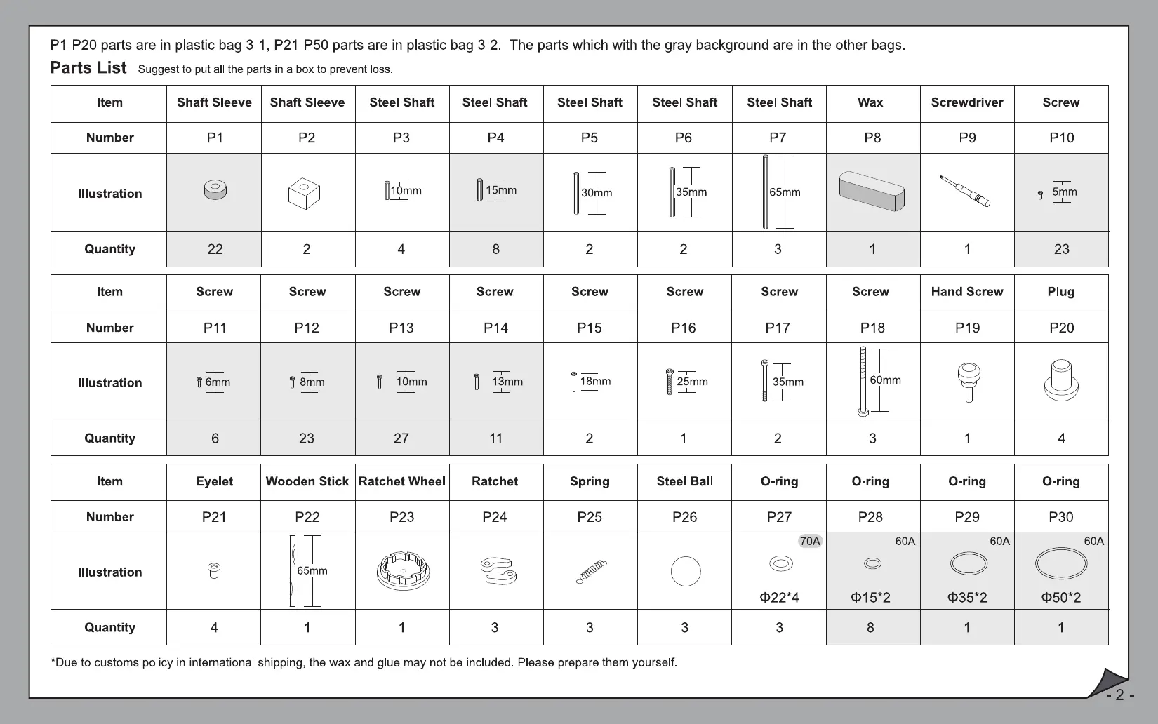 Parts List (suggest to put all the parts in a box to prevent loss )