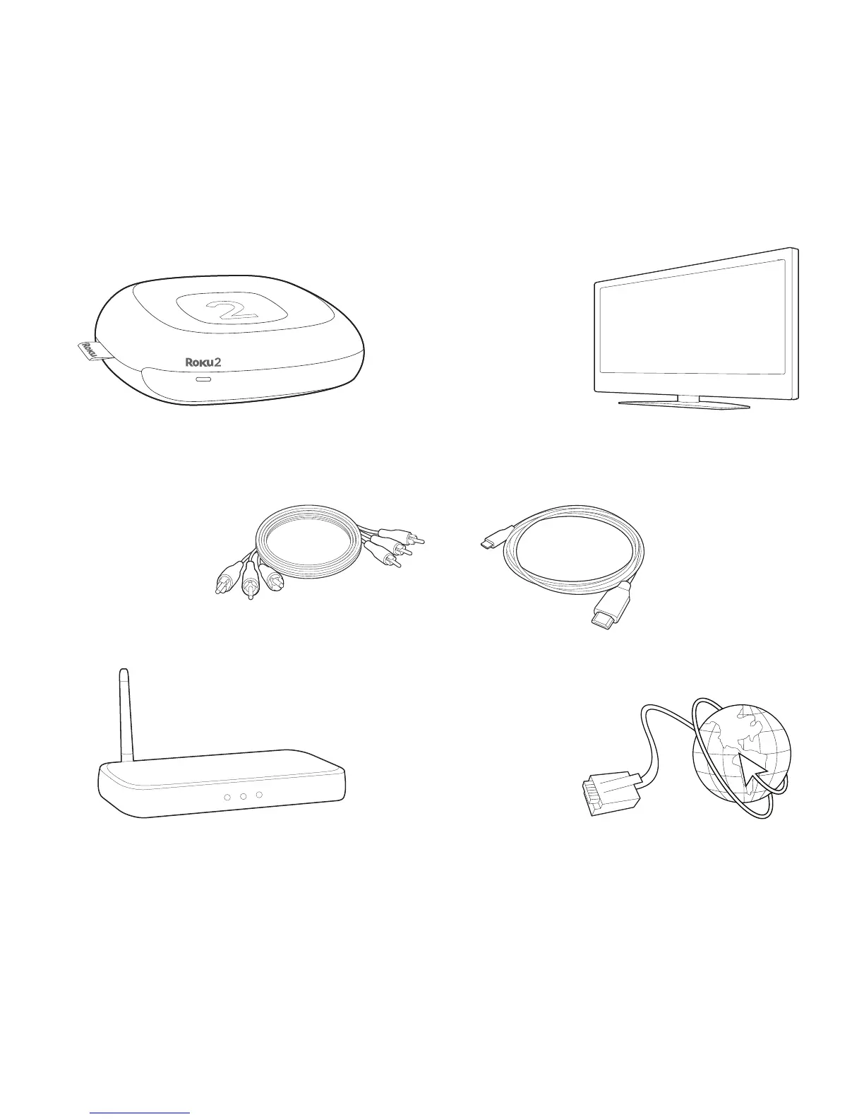 Roku 2 player - What you need; Roku player; TV (HD or standard definition); A;V cable (included)