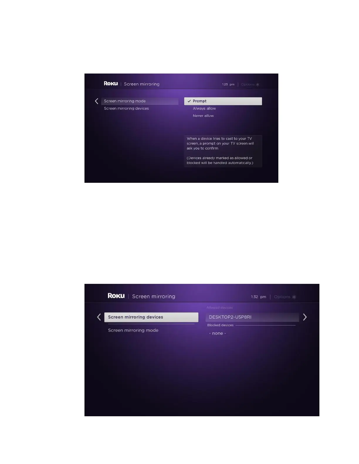 Prompt – Each time a screen mirroring request is made, your Roku device will