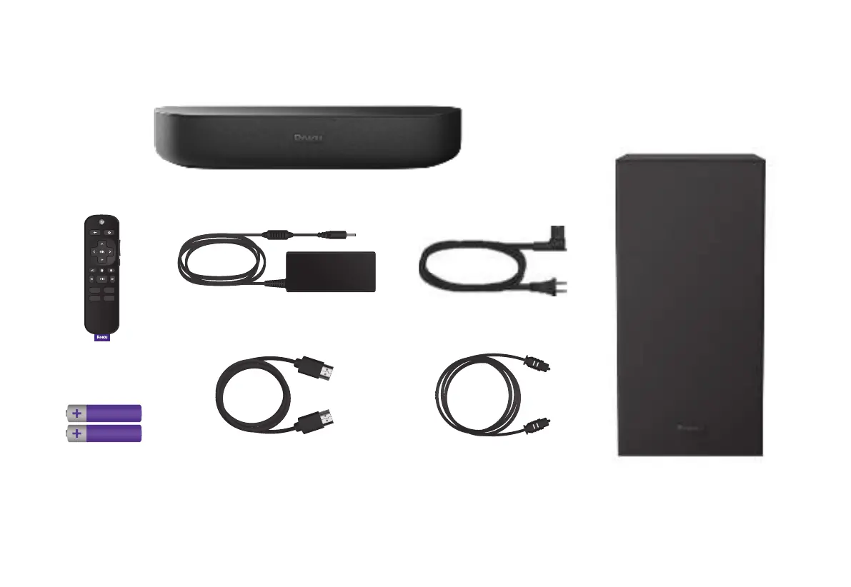 Roku Streambar - Whats Included; Roku Streambar; Roku Remote; Power Adapter and Cable