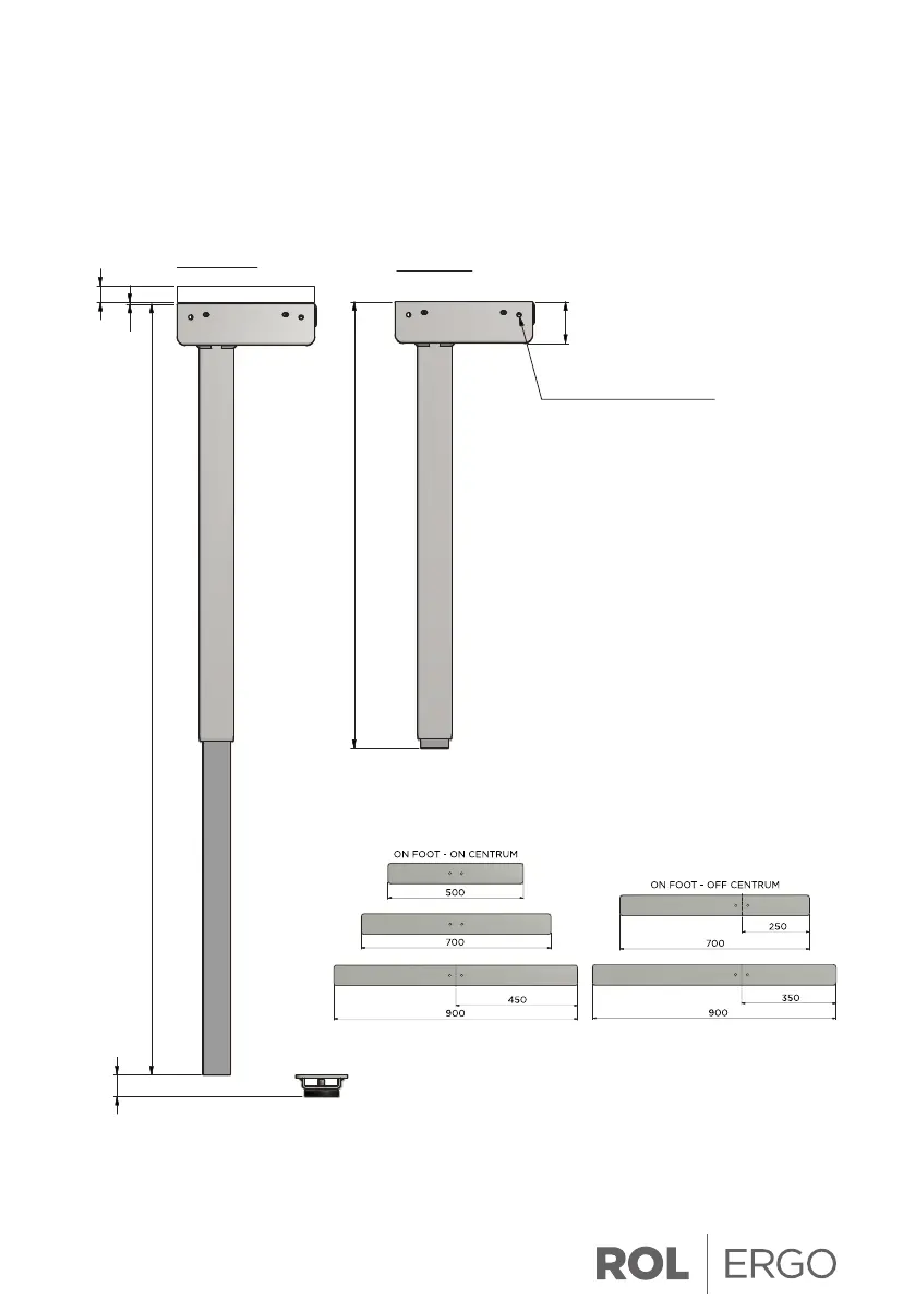 ROL ERGO Stroke 650 - Dimensions Column System: Series EE, ECS2; With 470 Stroke