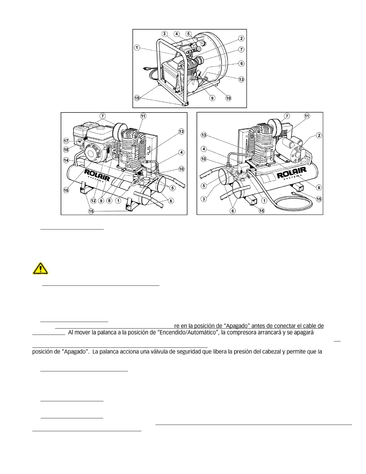 (2) SOBRECARGA MANUAL/REINICIO DEL MOTOR Cada compresora de aire eléctrica ROLAIR® está fabricada con protección de