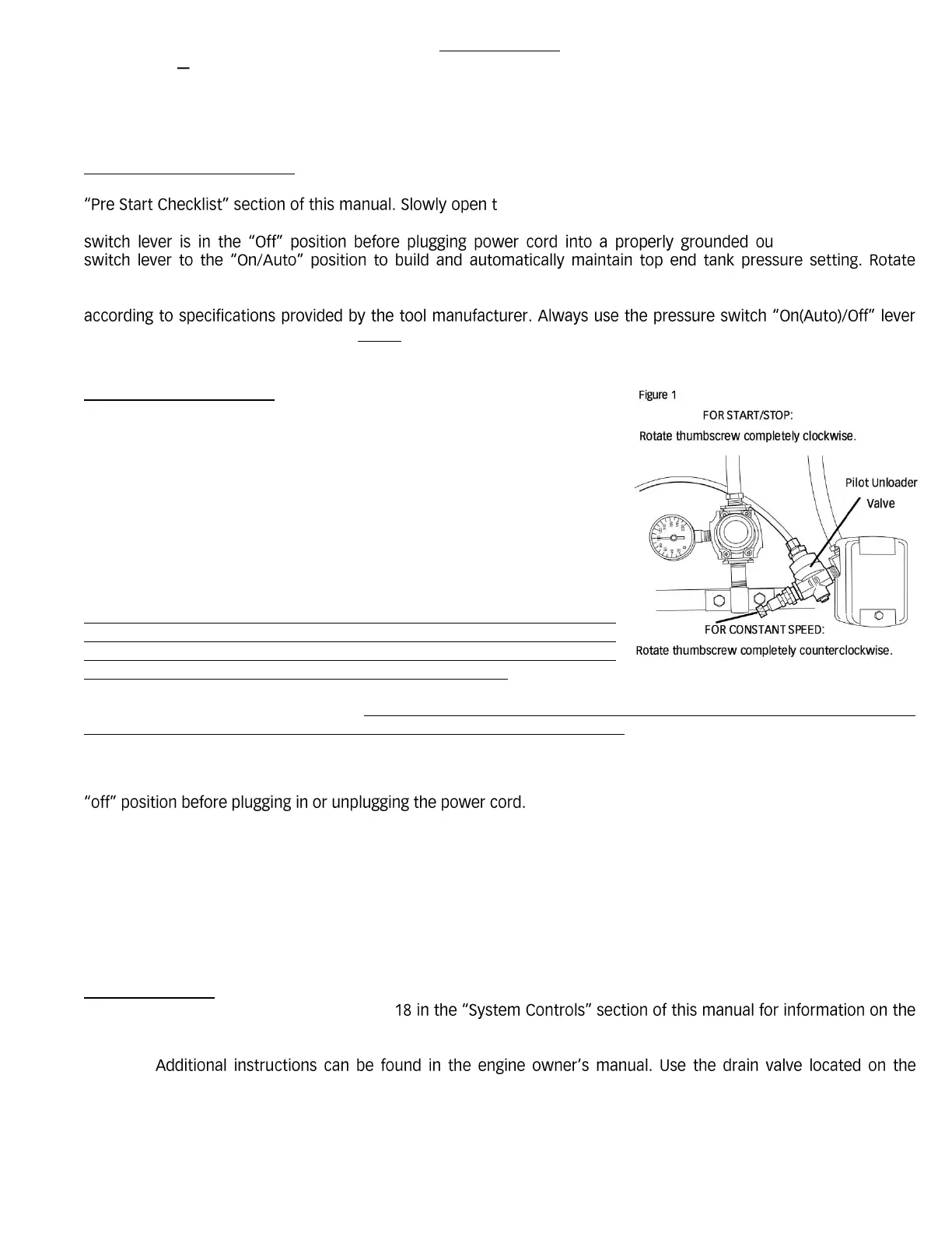 when operating in cold temperatures. Never stop the compressor by pulling the plug from the outlet. Use the