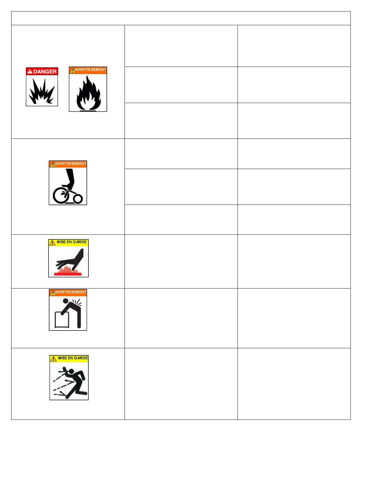 Risque d'explosion ou d'incendie