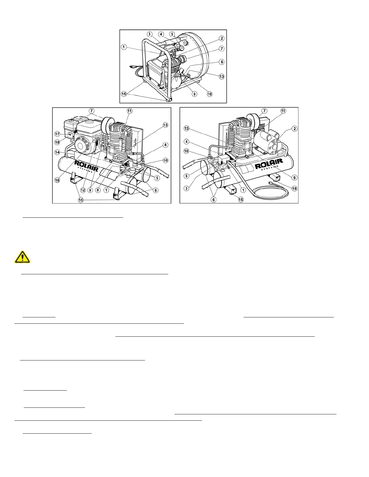 (2) BOUTON DE RÉINITIALISATION DE SURCHARGE/MOTEUR Chaque compresseur d'air électrique ROLAIR® est muni d'une