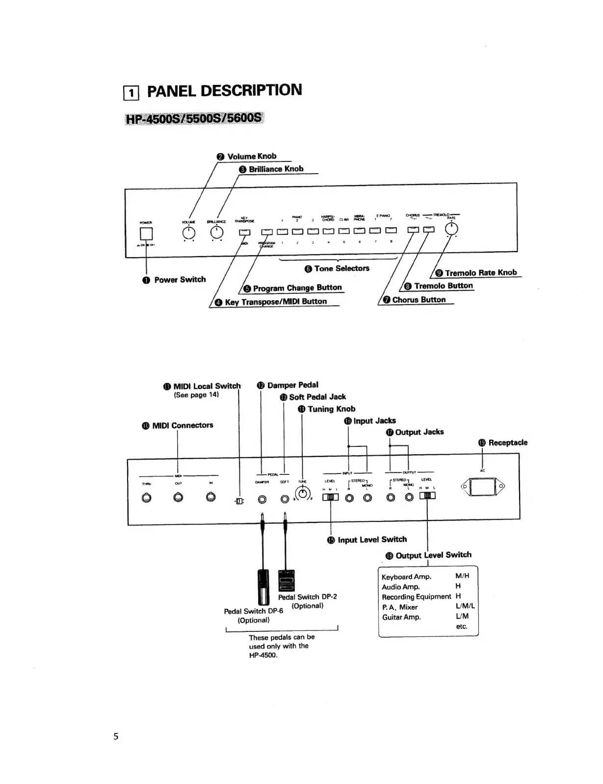Roland 3000s - Panel Description; Control Layout
