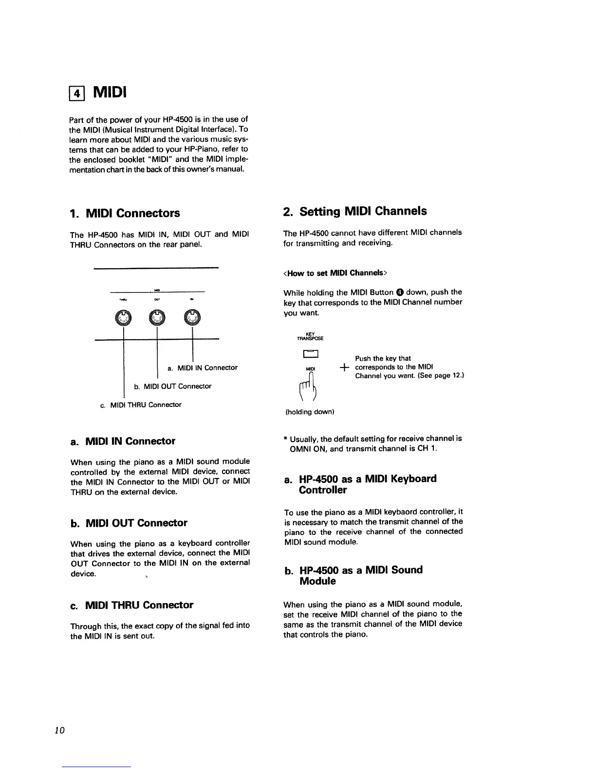 Roland 4500 - MIDI; MIDI Connectors; Setting MIDI Channels