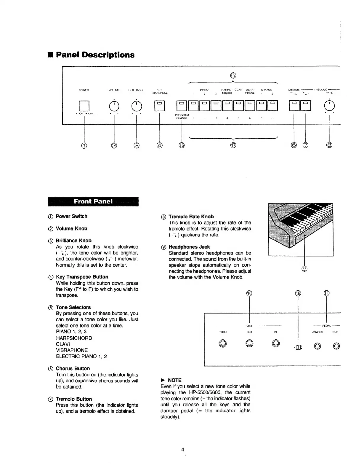 Roland 5500 - Panel Descriptions; Front Panel Controls; Additional Front Panel Controls; Rear Panel Connections