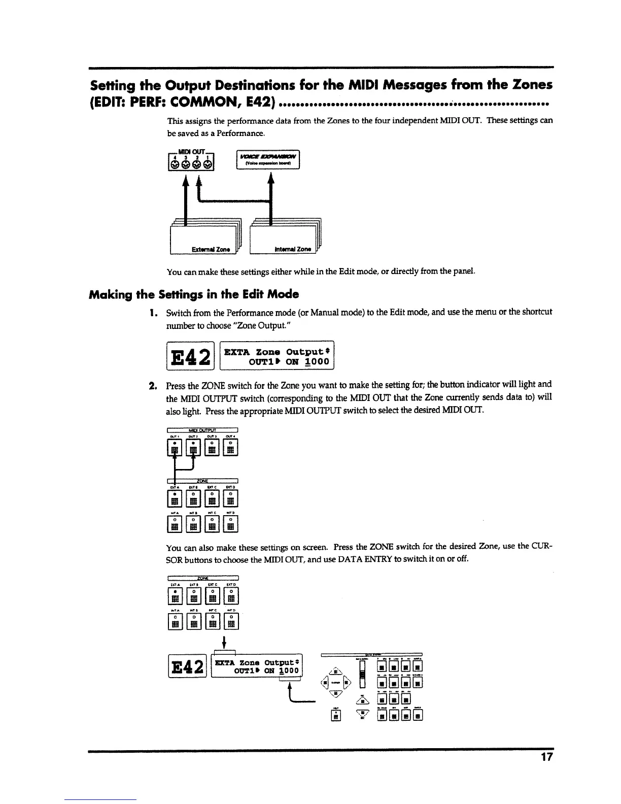 Roland A-90 - Setting the Output Destinations for the MIDI Messages from the Zones; Making the Settings in the Edit Mode