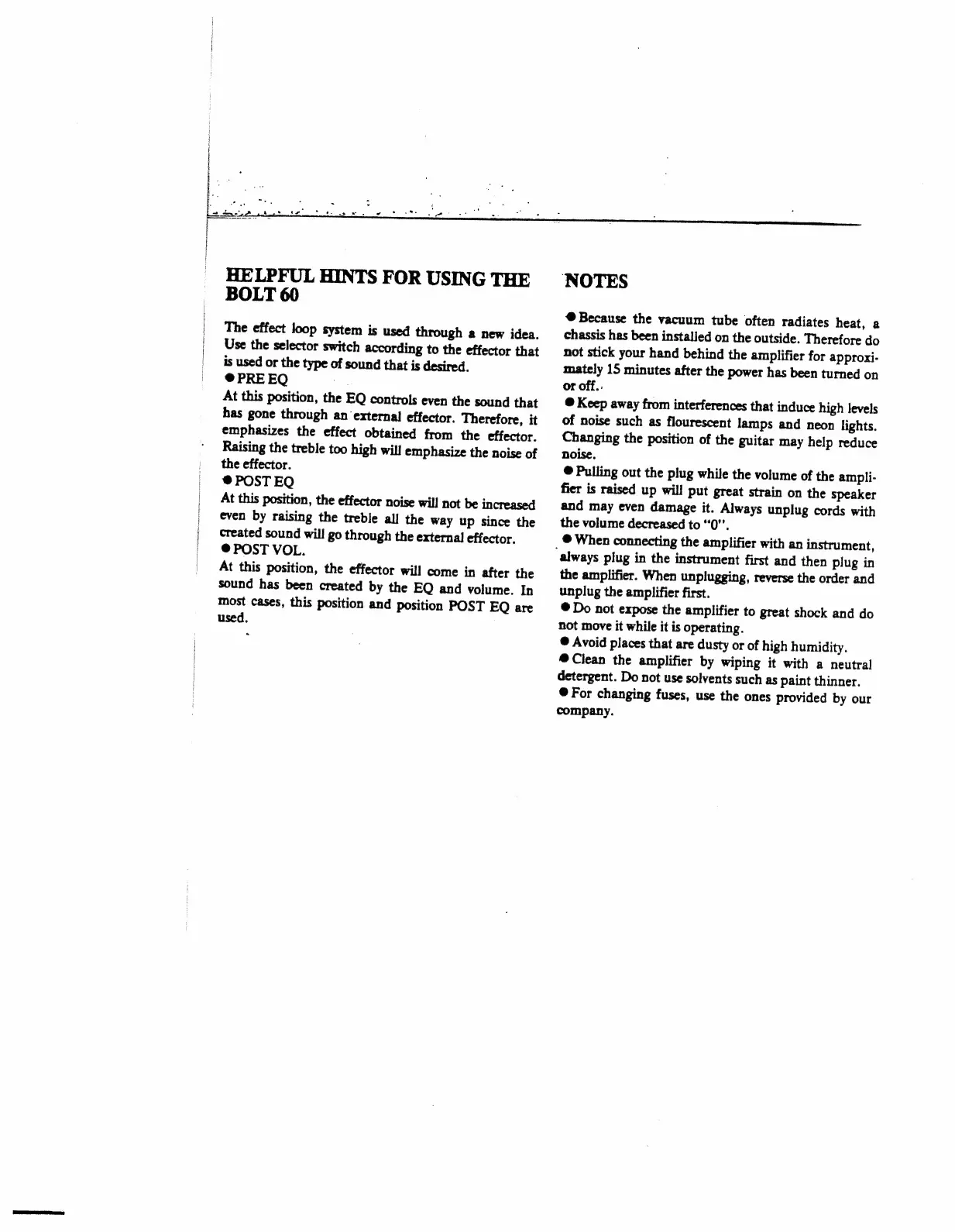 Roland BOLT-60 - Helpful Hints and Important Notes; Utilizing the Effect Loop System; Safety and Maintenance Precautions