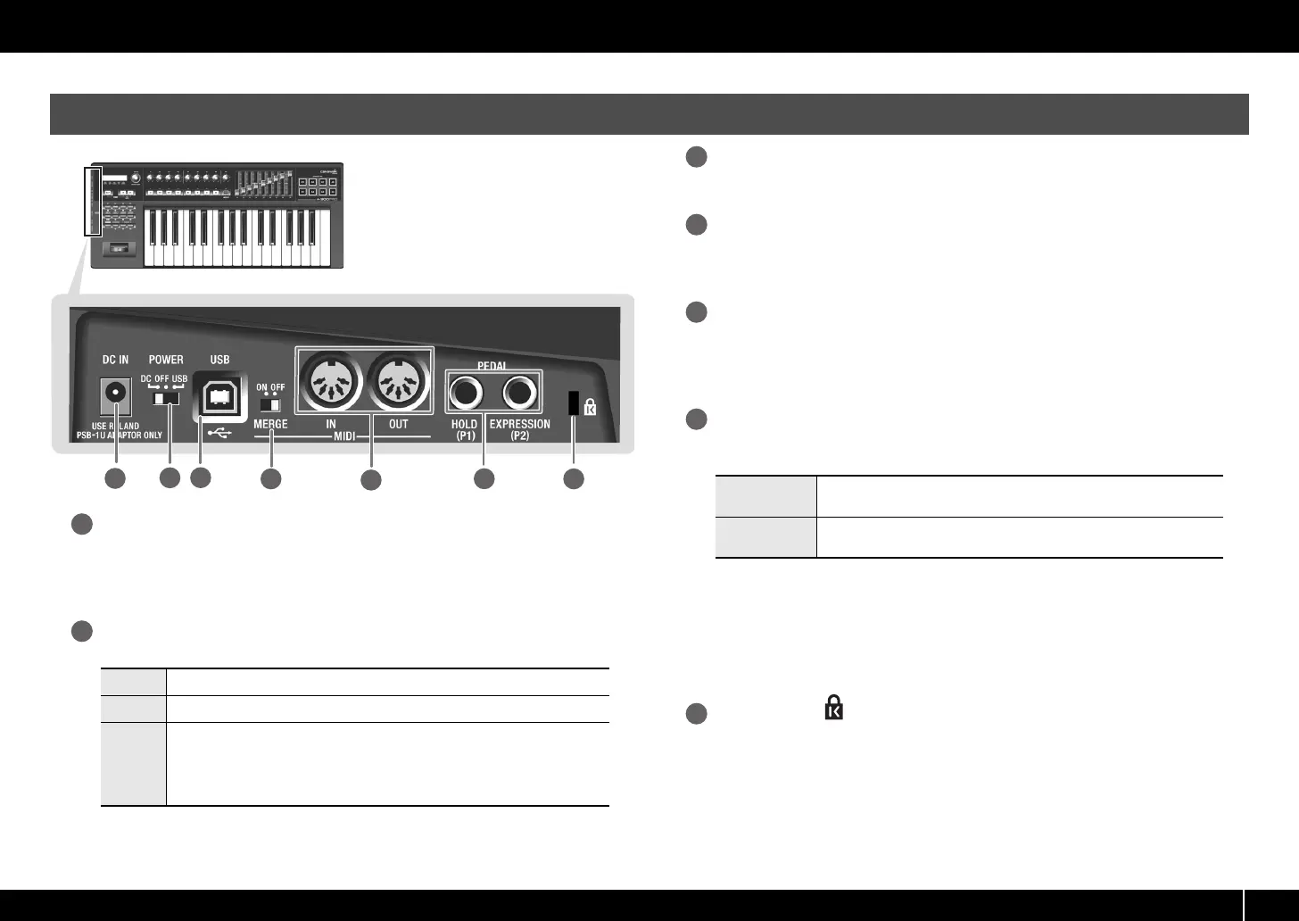 * Use only the specified expression pedal (EV-5 or EV-7; sold separately). By
