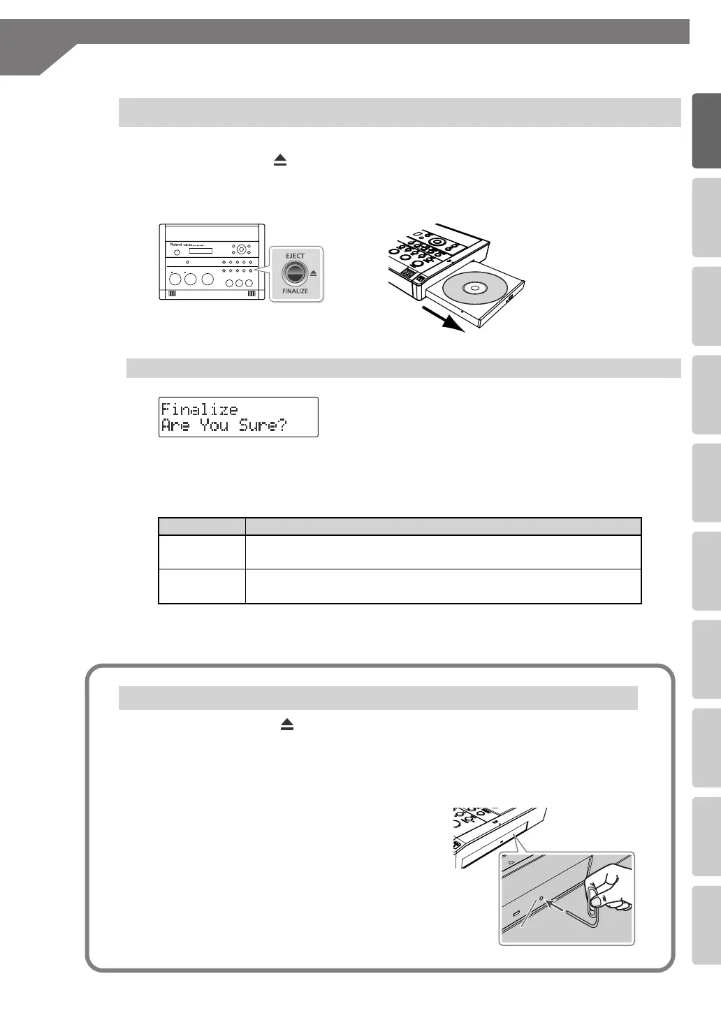 For details on finalizing, refer to “Making a CD-R/RW Disc for Playback on Another CD