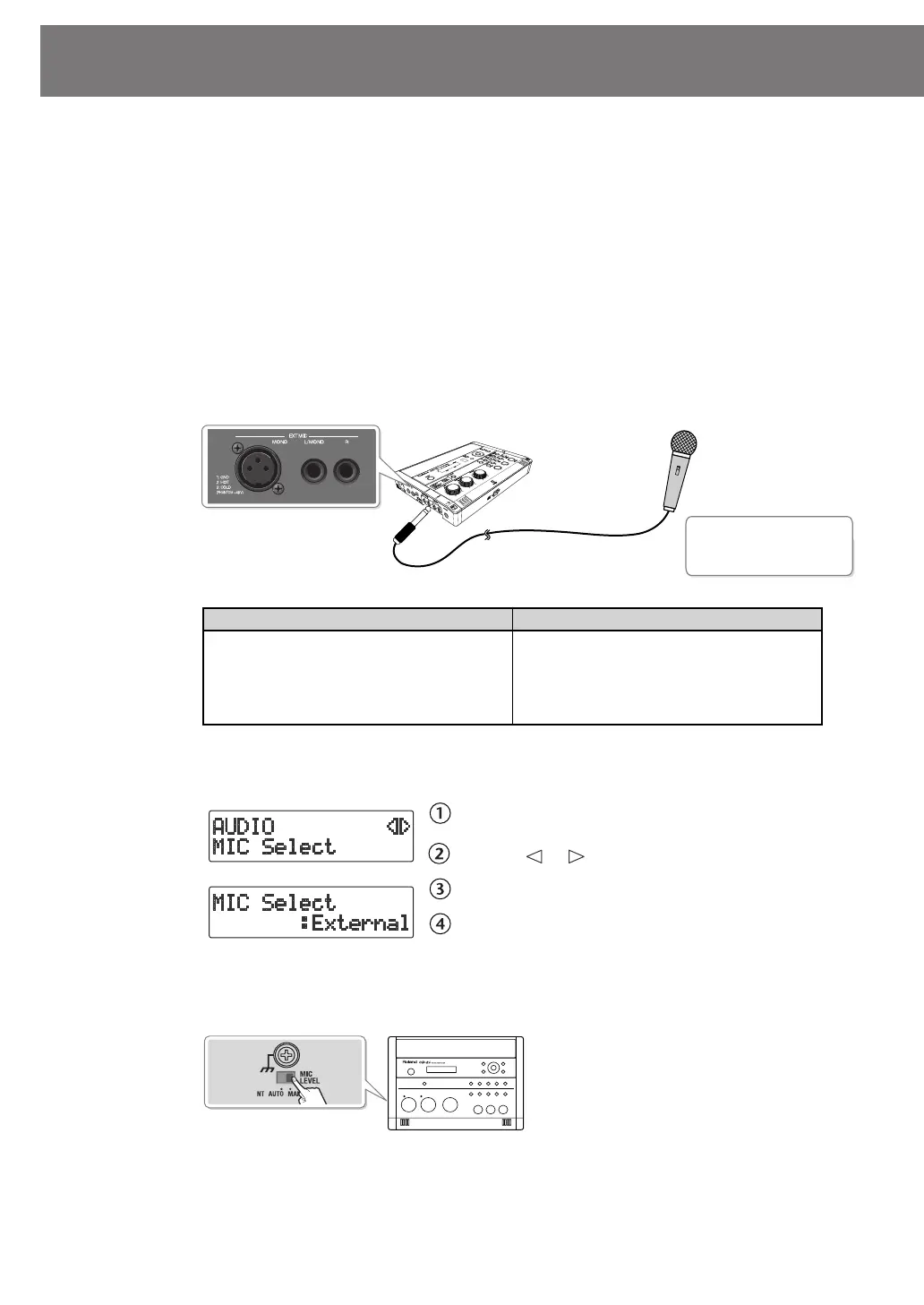 Use the [ ] [ ] buttons to choose “MIC Select.”