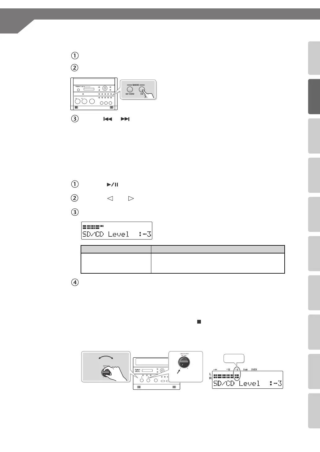 Use the [+] [-] buttons to adjust the CD’s playback level (“SD/CD Level”).