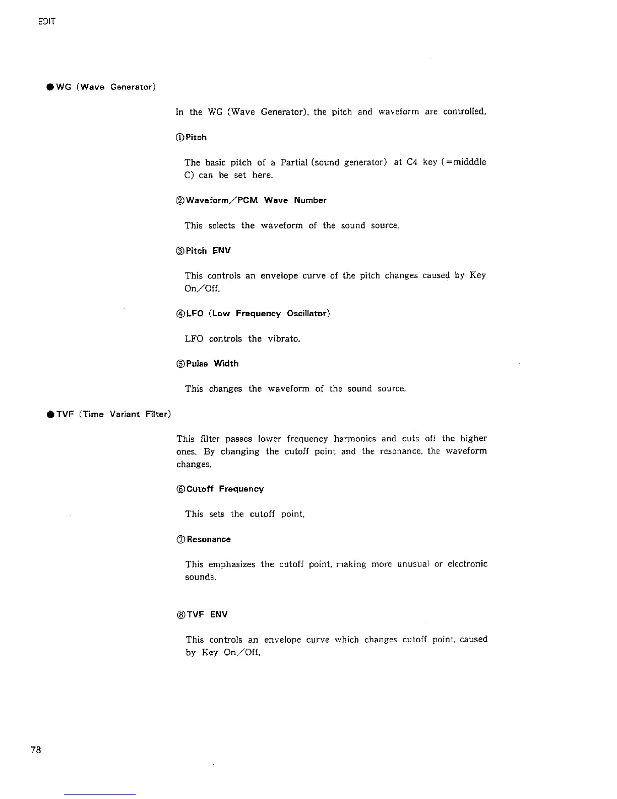 Roland D-10 - WG (Wave Generator); TVF (Time Variant Filter)
