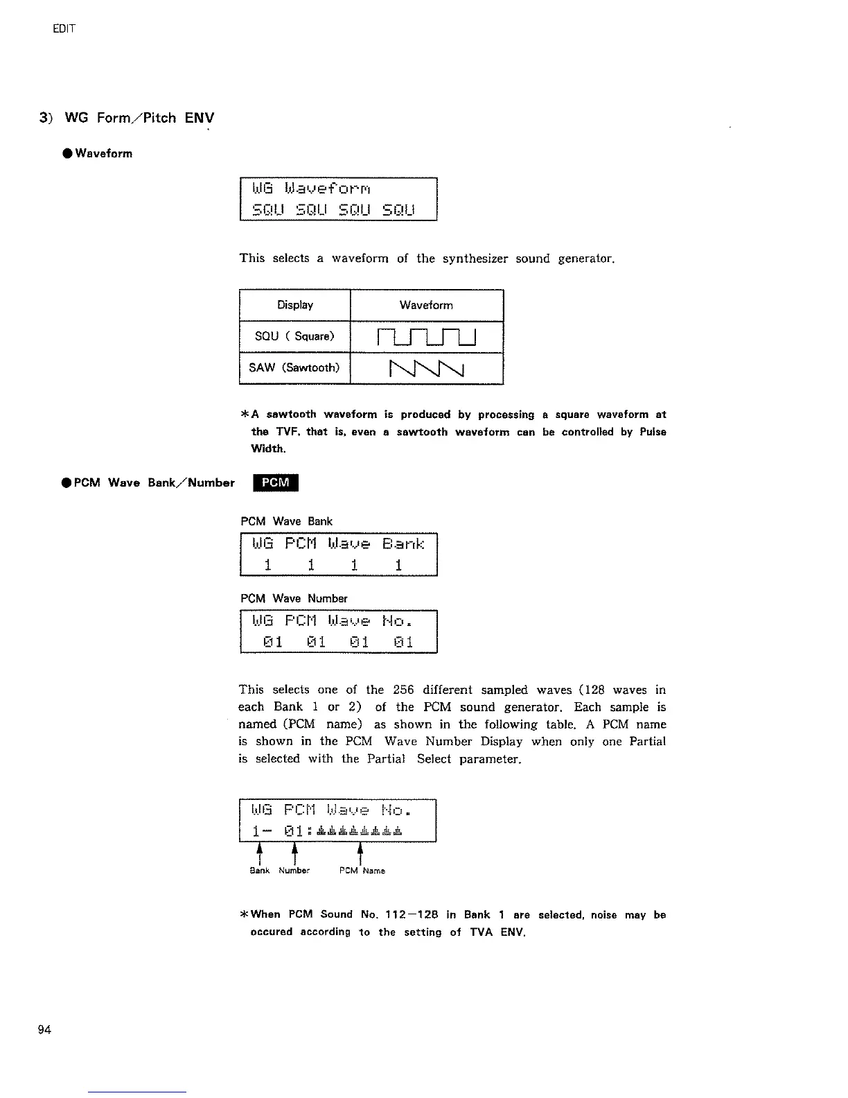 Roland D-10 - WG Form;Pitch ENV; Waveform; PCM Wave Bank;Number