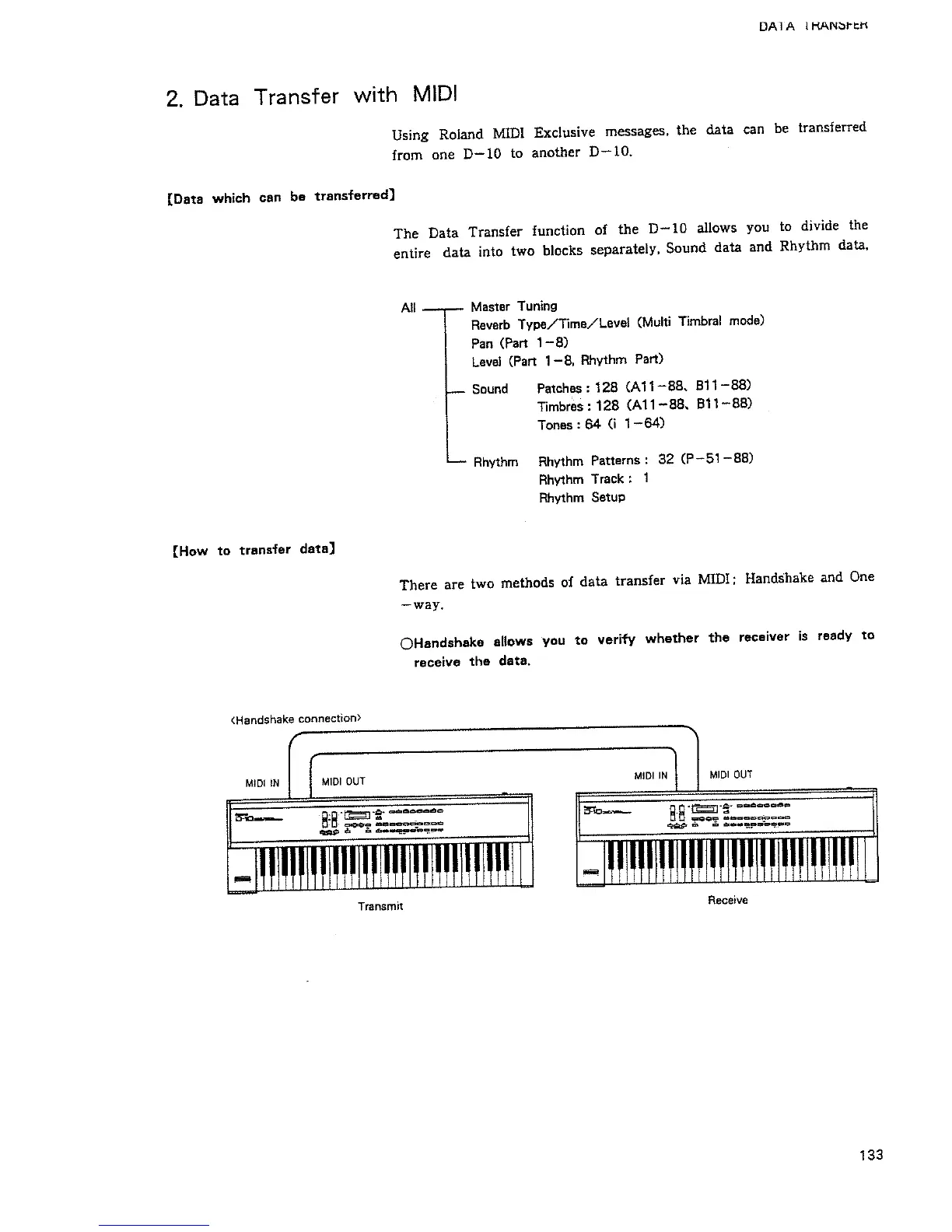 Roland D-10 - Data Transfer with MIDI; Data Which Can be Transferred; How to Transfer Data