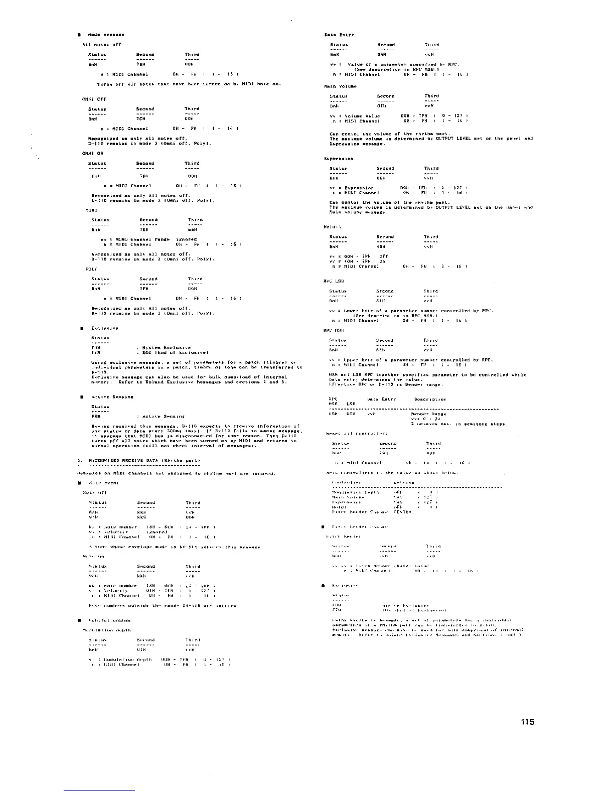Roland D-110 - 4. MIDI Channel; 11. Program Change; 8. Expression; 9. Pitch Bend