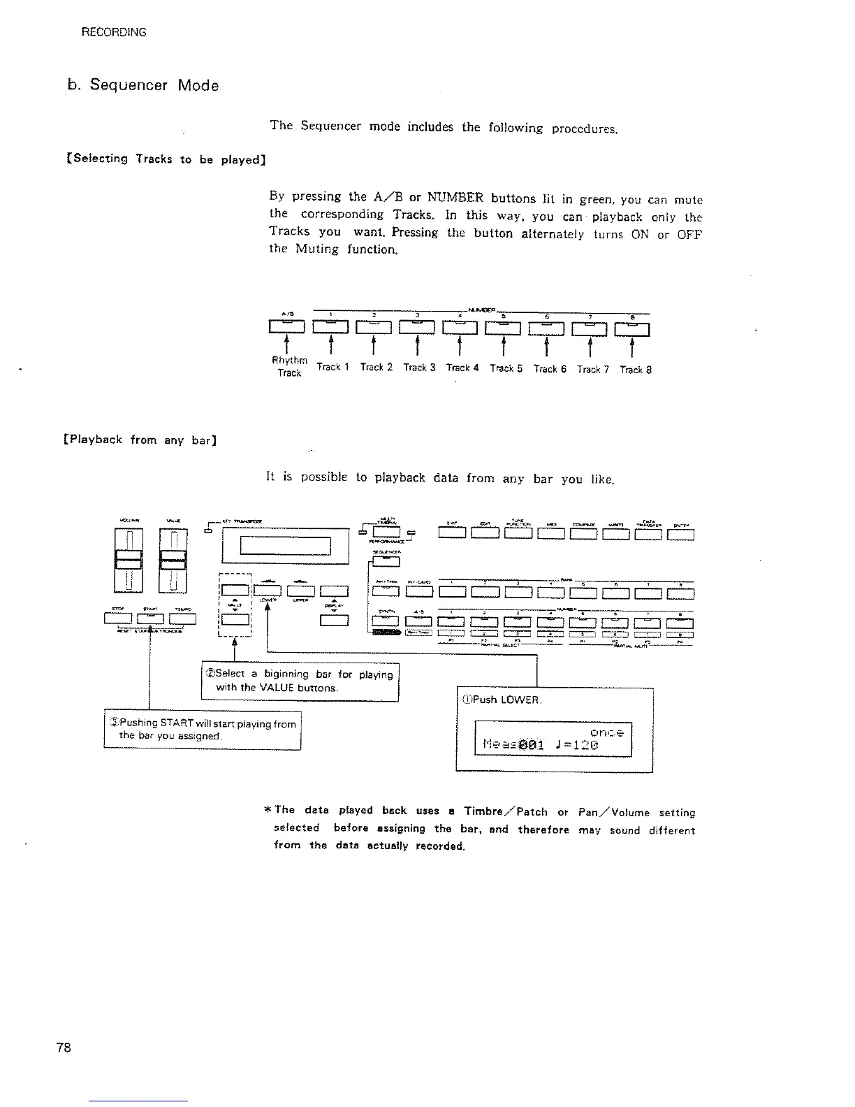 Roland D-20 - Selecting Tracks to be Played; Playback from any Bar