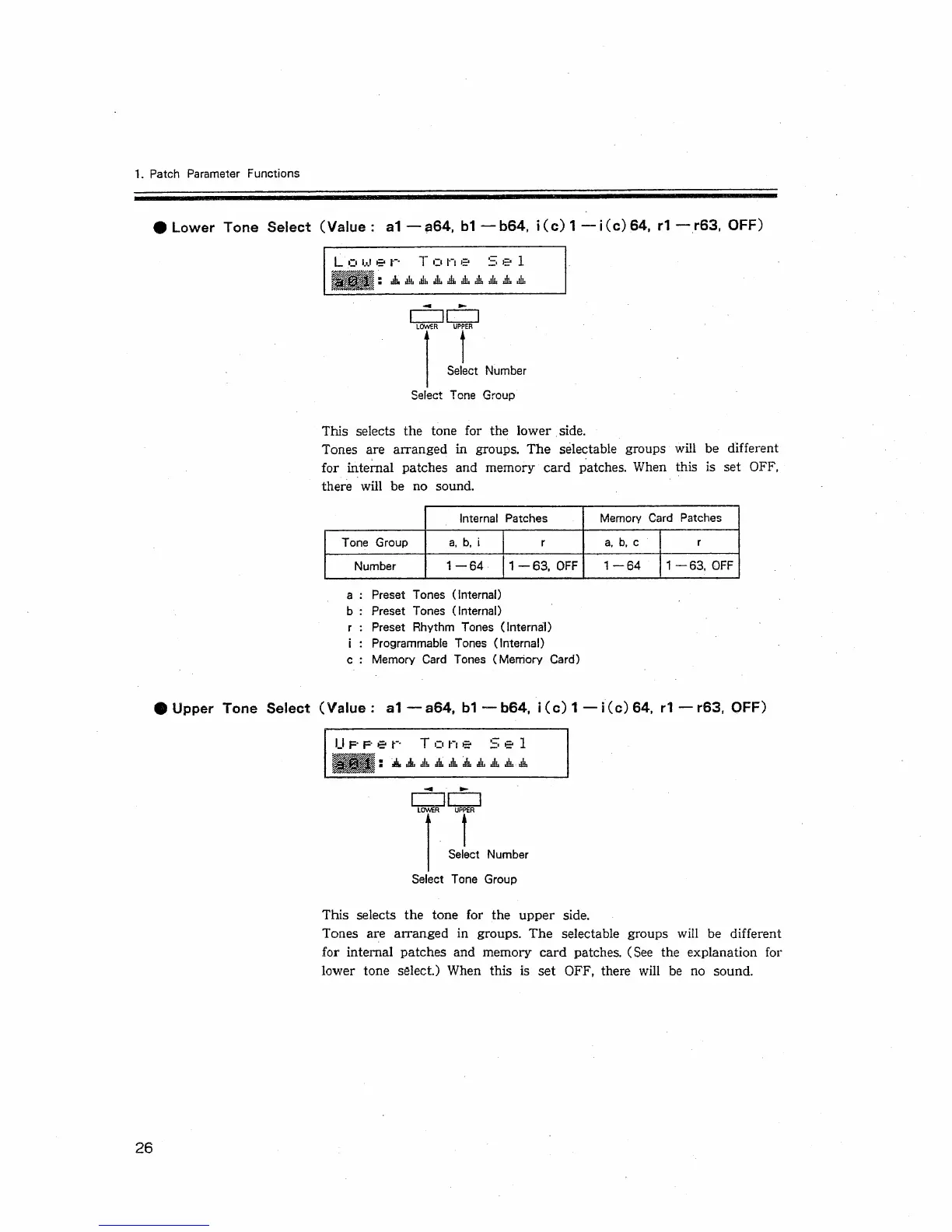 Roland D-5 - Lower Tone Select; Upper Tone Select