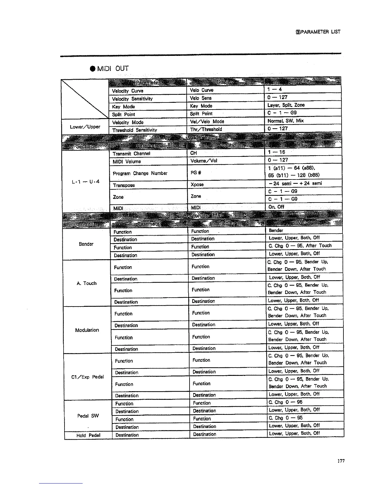 Roland D-70 - MIDI OUT Parameters