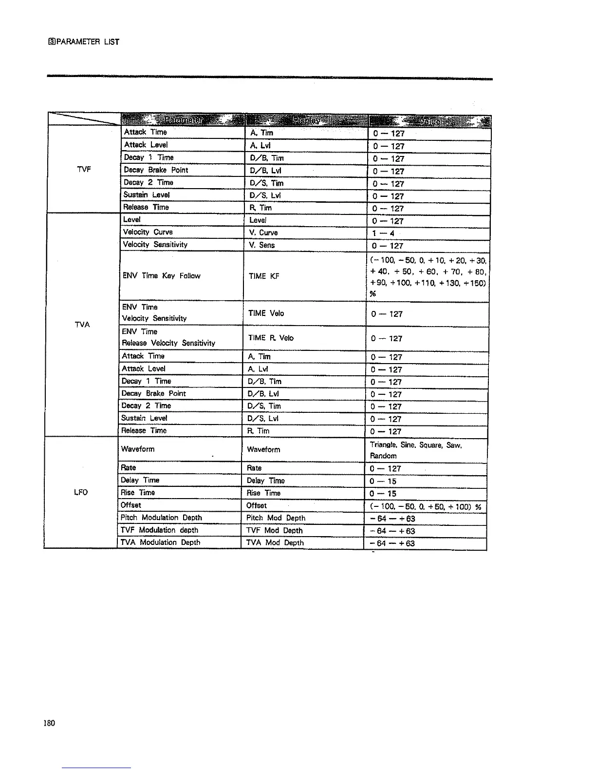 Roland D-70 - TVF, TVA, and LFO Parameters