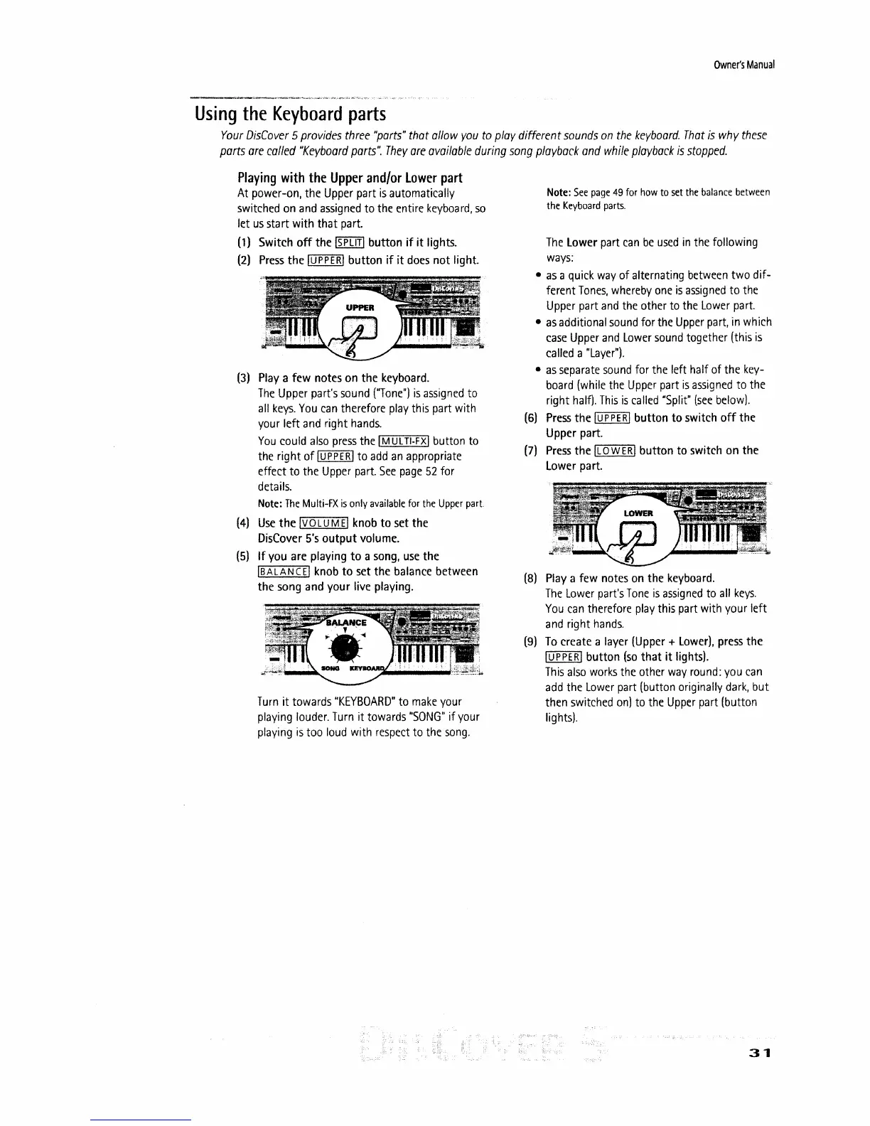 Roland DisCover 5 - Using the Keyboard Parts; Playing with Upper and Lower Parts; Split Point Settings