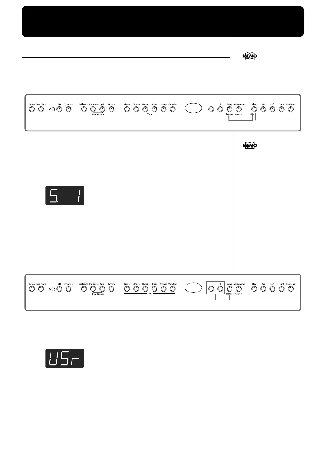 The [Song/Tempo] button’s indicator will light in red, the [Play] button’s indicator will
