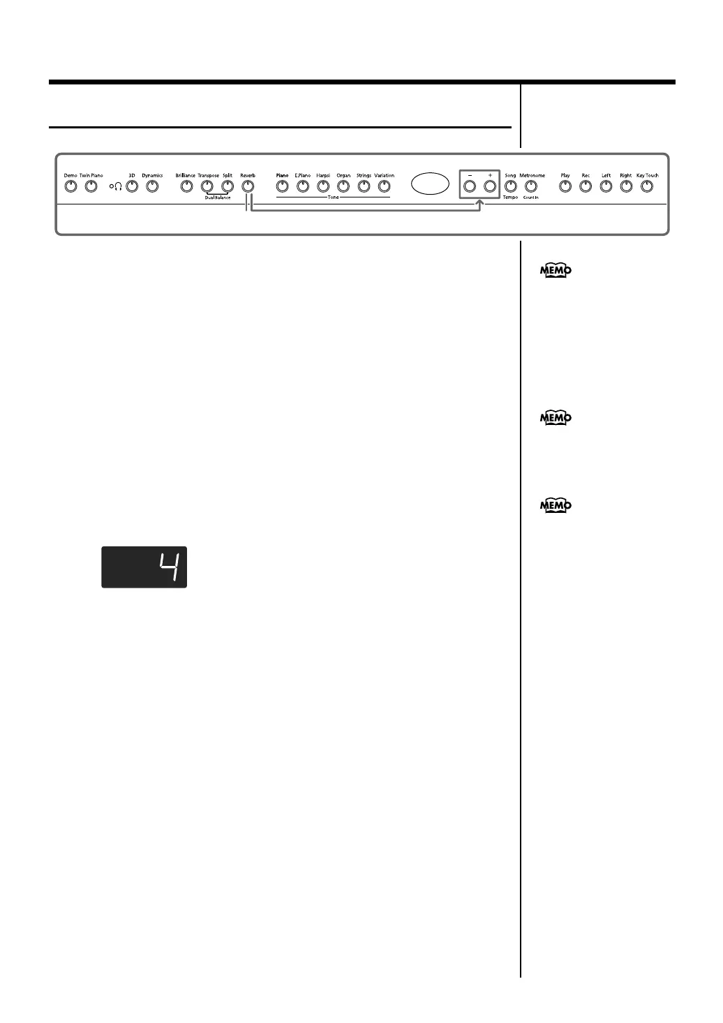 The amount (depth) of the reverb effect can be set to any of eight levels.