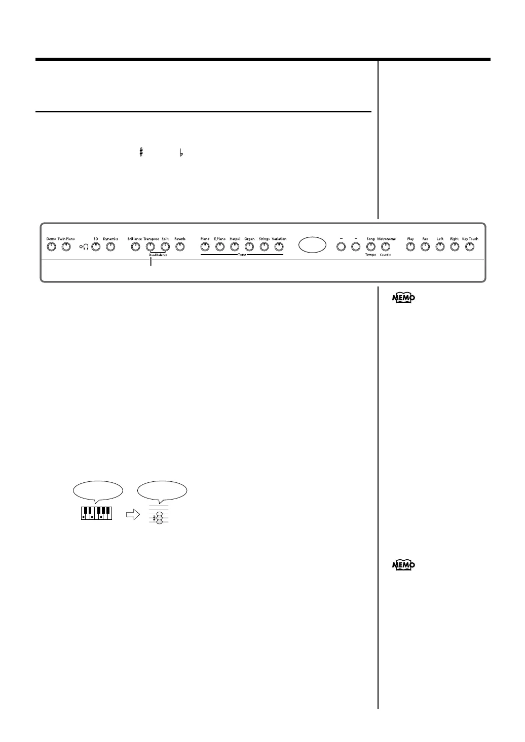 When you press the [Transpose] button once again, getting its indicator to light, the
