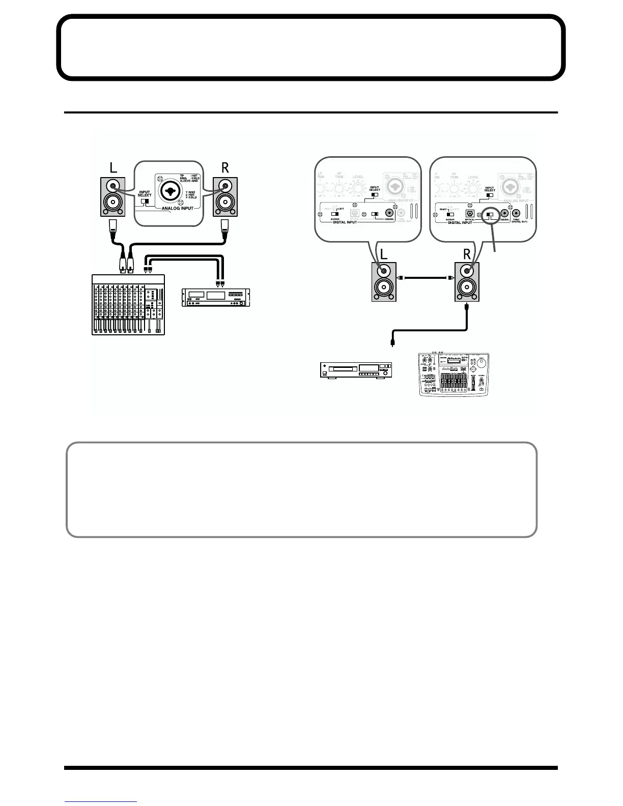 • When using digital in connections, turn down the LEVEL knob of this device and raise the output level of the