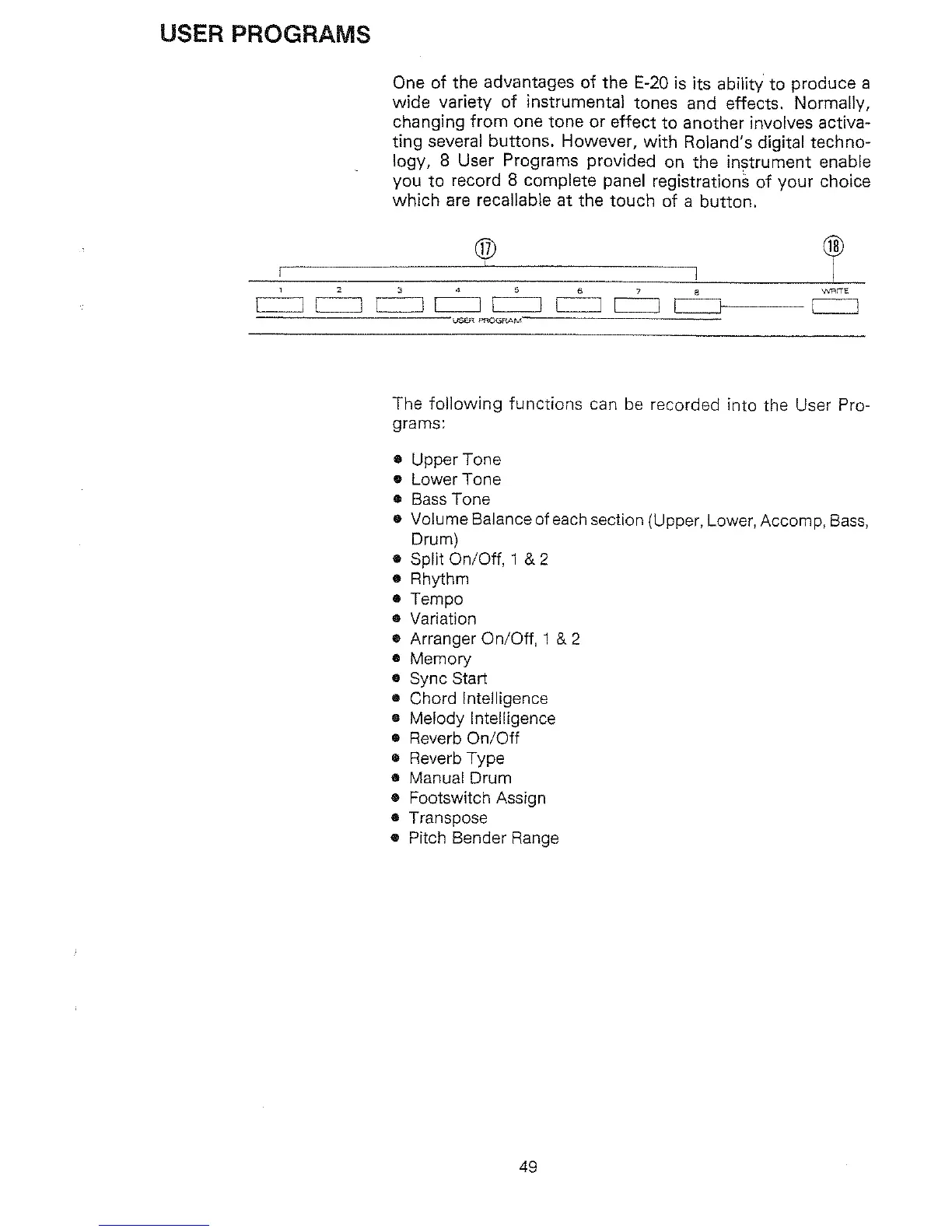Roland E-20 - User Program Management; Recording Panel Configurations
