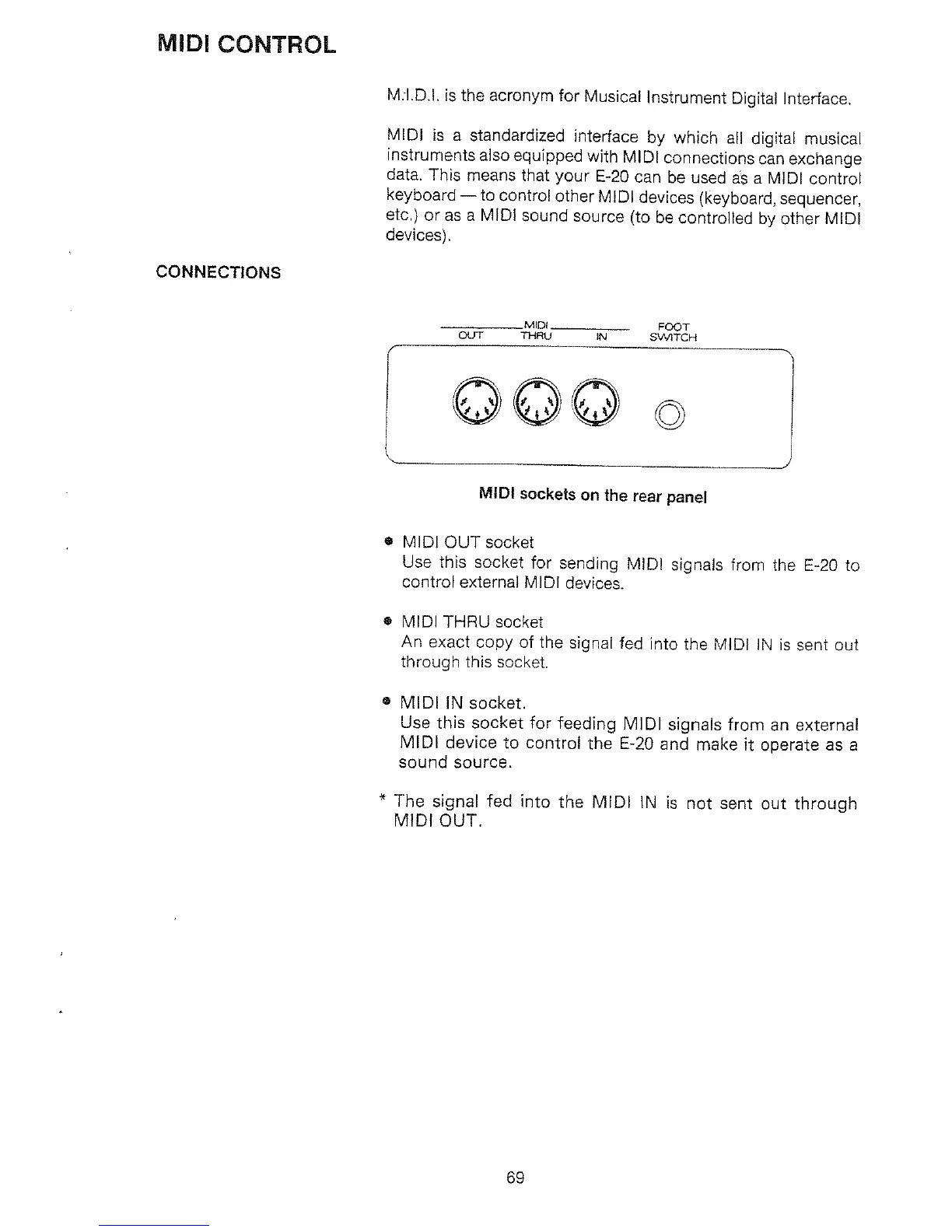 Roland E-20 - MIDI Communication; MIDI Connections and Ports