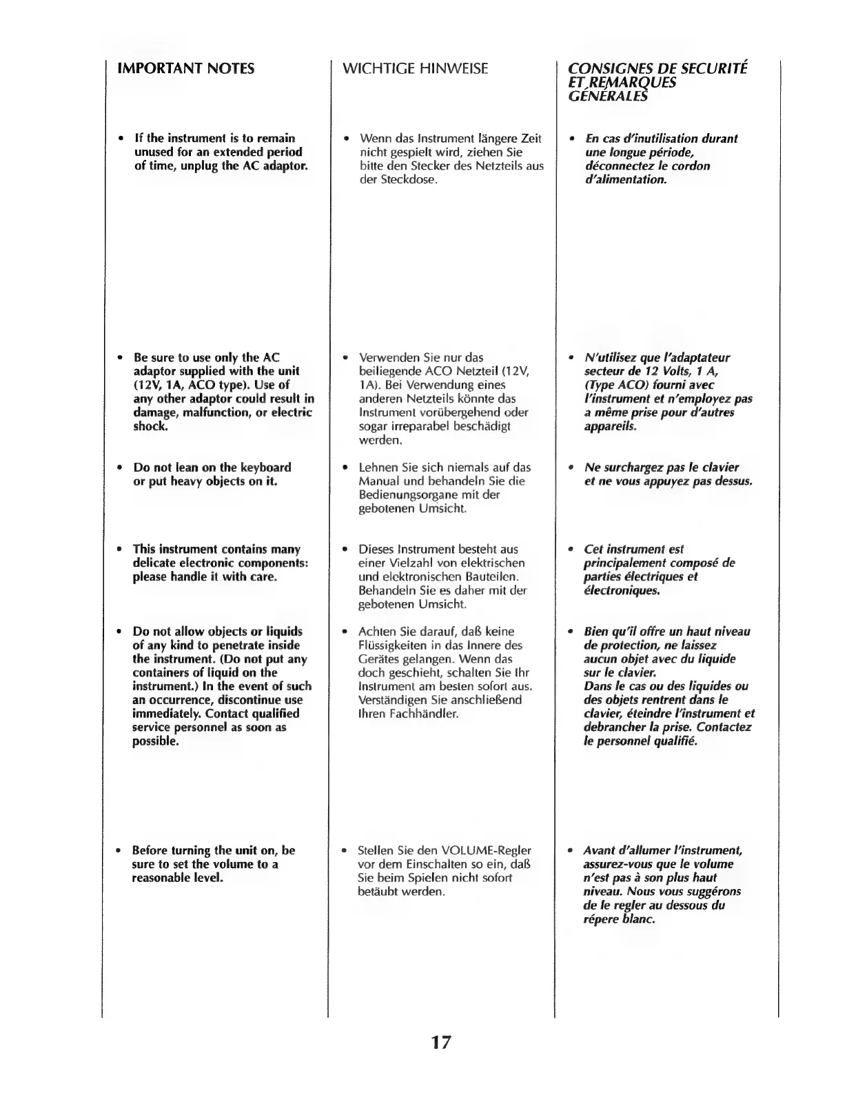 Roland E-28 - Important Notes