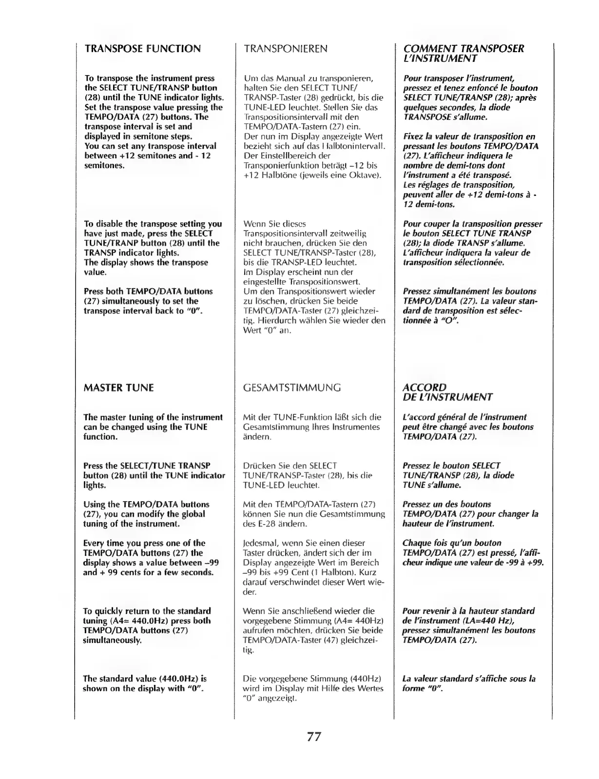 Roland E-28 - Transpose Function; Master Tune