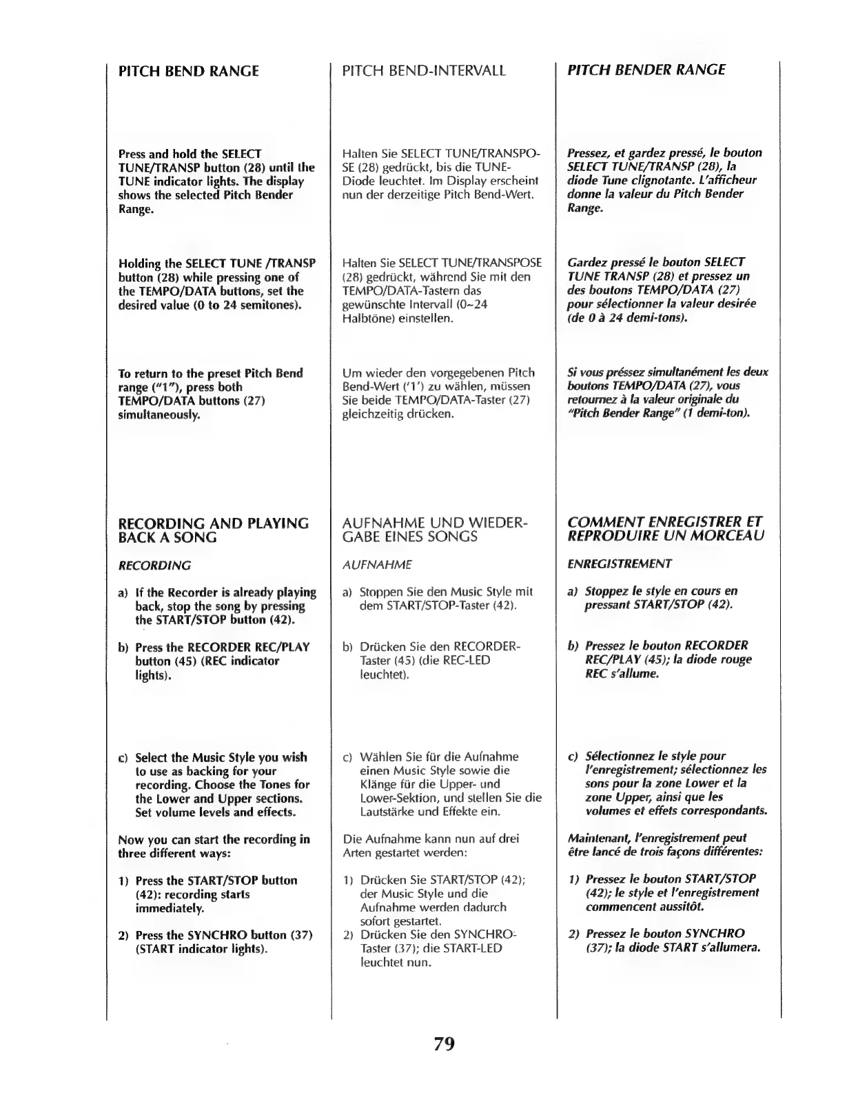 Roland E-28 - Pitch Bend Range; Recording and Playing Back a Song