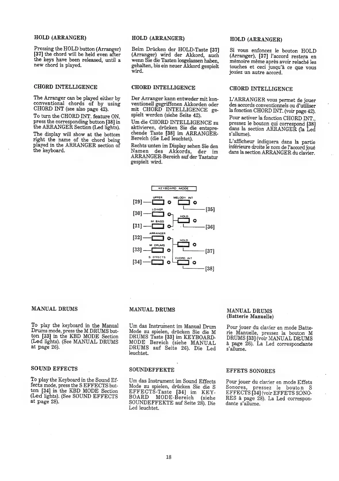 Roland E-35 - Keyboard Mode; Hold (Arranger); Chord Intelligence; Manual Drums